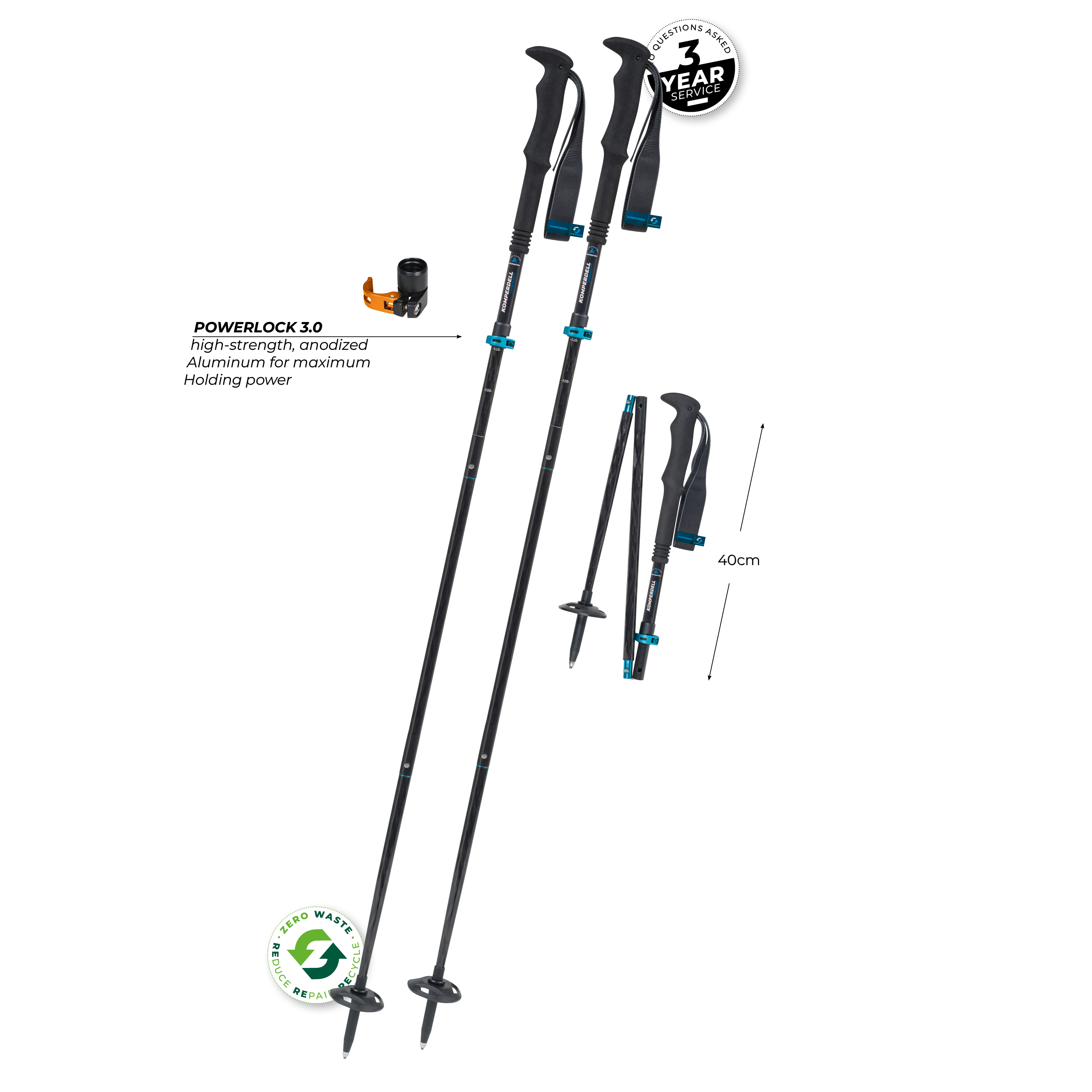 Größen | Gewicht: 241g Packmaß: 40cm Verstellbar von 115 - 135 cm |